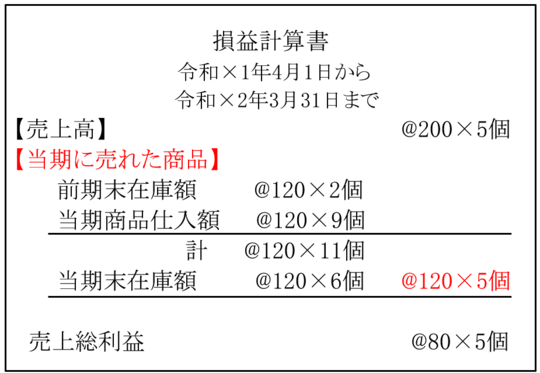 売上総利益400=@80×5個ですので、