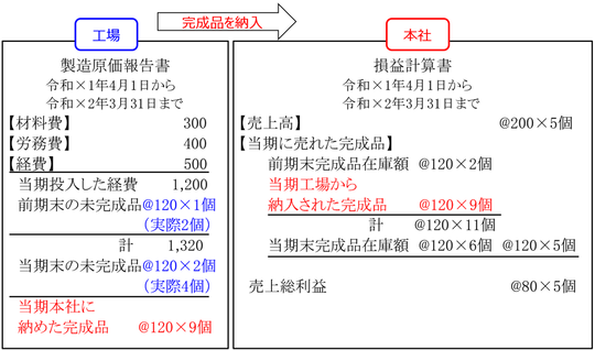 【7】前期の未完成品を追加加工してできた完成品が2個=240