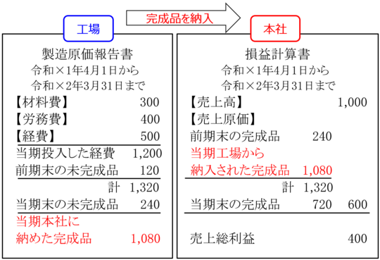 先ほどは製造原価報告書の投入産出関係を説明するため、