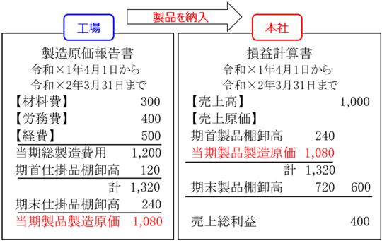 会社の製造原価報告書と損益計算書を並べると次のとおりです。