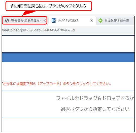 ブラウザのタブをクリックして「事業資金 必要書類提出」ページに戻ります。