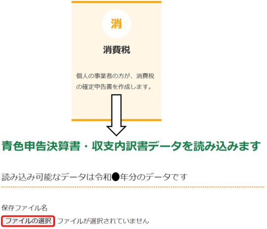 先ほど保存した青色申告決算書データを読み込みます。