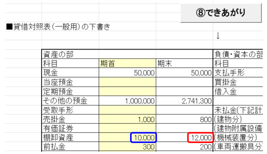決算書下書①~⑧までの入力を行います。