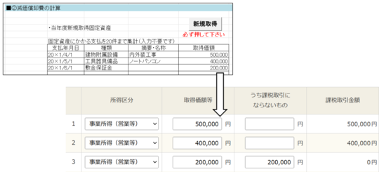 | 決算書下書② | 「e-Tax」で計算した 結果のみ入力 | 減価償却費の計算 |