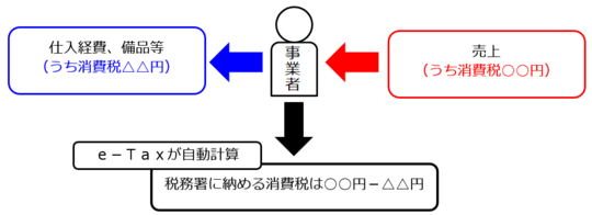 消費税の納税額=売上で預かった消費税-仕入経費や備品等に支払った消費税