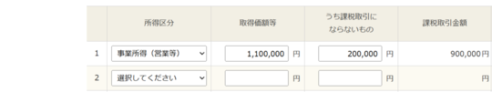 「所得区分」=「事業所得(営業等)」を選択して、