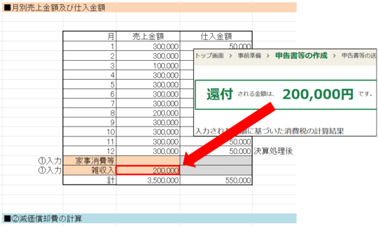 この還付額はエクセルソフトに入力しますので、