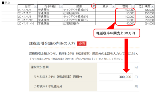 軽減税率8%の売上のみ表示されます。