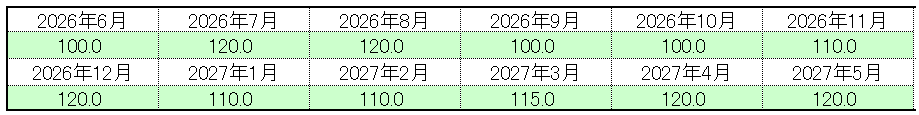 例えば、上の例で7月と8月は「120」ですが、