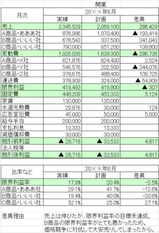 このため、売上だけでなく利益にも注目し、実績と比較するようにします。