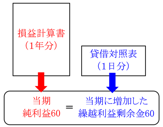 上記の損益計算書と貸借対照表の関係を使うことにより、