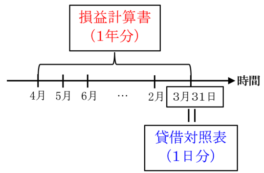 貸借対照表は3月31日現在、1日分の内容です。