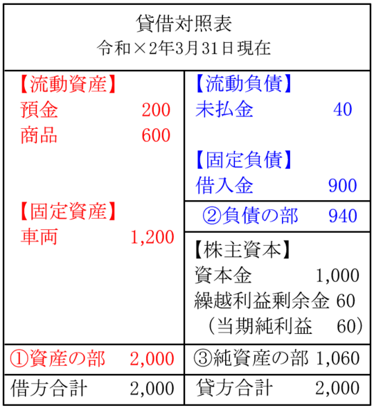 貸借対照表でこれがだいたい合っていると分かれば、