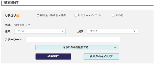 助成金、補助金情報を検索することができます。