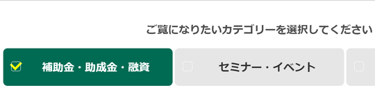 一番左側の「補助金・助成金・融資」のチェックはそのままで