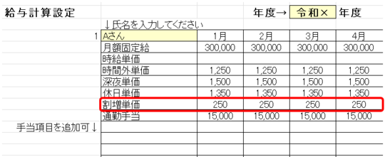 1人1人、毎月の給与明細をポチポチ変更入力していくのは手間ですので