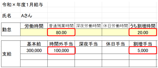 のAさんが令和×年1月に80時間の普通残業をしたとします。