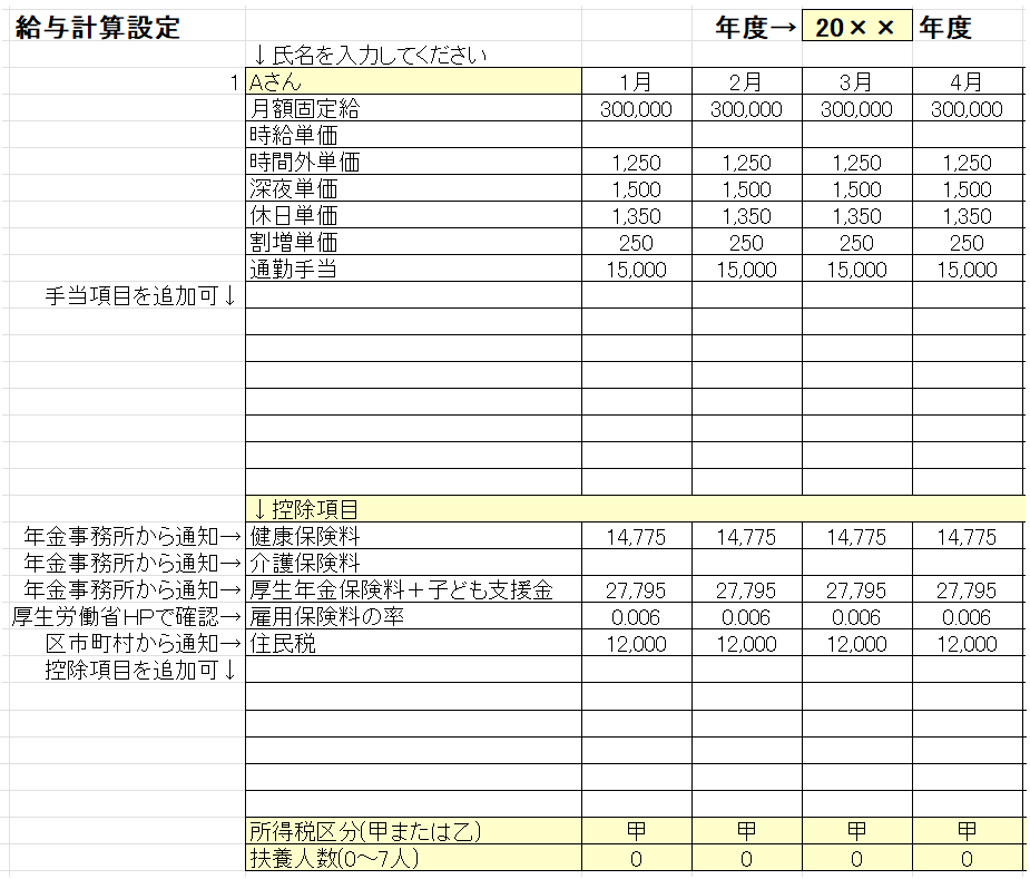 以上が「給与計算設定」シートの入力となります。