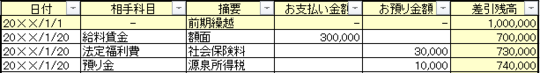 | 4 | 給与やボーナスの支払い | 給料賃金 法定福利費 預り金 |