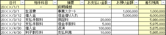 | 13 | 金融機関借入金と元本利息の返済 (保証協会保証料等が差し引かれた金額が入金) | 借入金 支払手数料 |