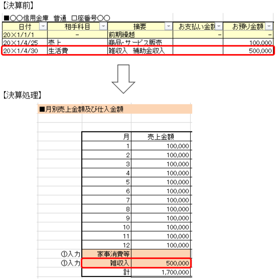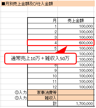 | 21 | 雑収入(商品・サービス販売以外の入金) | 売上 生活費 |