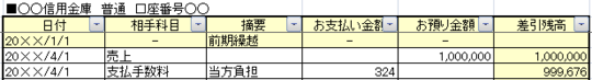 売上金は100万円だけれども、振込手数料324円は当方負担のため、