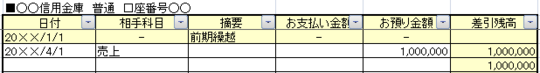 4月1日に売上金100万円が入金になった場合の処理は次の通りです。