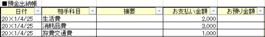 | 15 | 給与の振り込み入金 | 普通預金 生活費 |